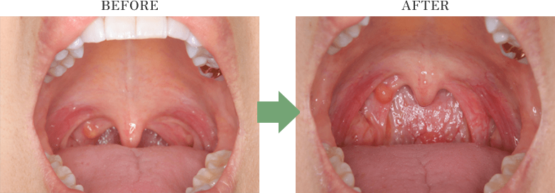 施術直後に熱による軟組織の収縮(30%)がおき、唾液を飲み込みやすい、呼吸がしやすくなったなど実感することもできます。