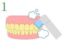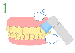 歯面のクリーニングを行います。汚れを徹底的に除去し、歯面をなめらかに整えます。