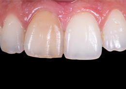 高濃度(35%)の有効成分が配合された薬剤を使用し1日30分装着、2週間継続。ホワイトニング期間中は、色の濃い飲食物を控えていただいたことで、より高い効果が得られました。