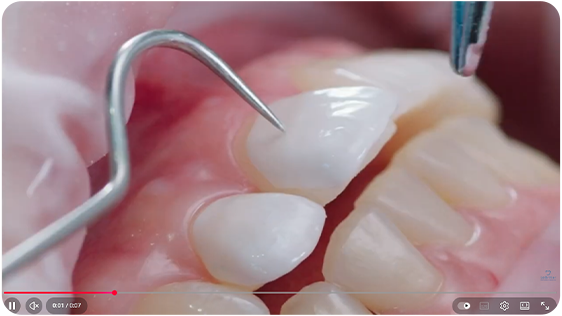 歯面のクリーニングを行い、汚れを徹底的に除去することで、シェルとのフィット精度を高めます。